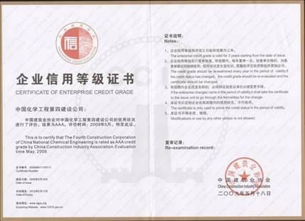 公司在學習實踐科學發(fā)展觀活動中,切實加強信用管理,嚴格履行合同,優(yōu)質(zhì)安全文明施工,積極推進技術進步,自覺履行社會責任,取得了可喜的成效。近日,經(jīng)中國建筑業(yè)協(xié)會評定,公司獲評首批全國建筑業(yè)AAA級信用企業(yè)。