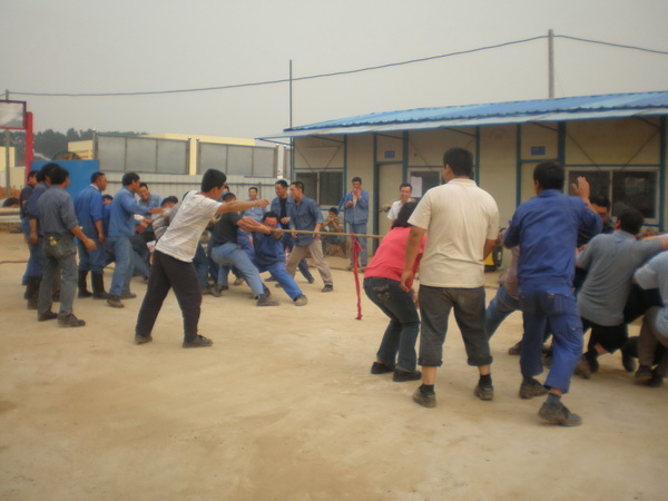 比賽在項(xiàng)目部辦公區(qū)內(nèi)的空地上進(jìn)行,共有管工班、鉗工班、電工班、綜合隊(duì)等四支隊(duì)伍參賽。參賽隊(duì)員斗志昂揚(yáng),情緒飽滿,如同臨陣的戰(zhàn)士。隨著裁判的一聲哨響,拔河比賽正式拉開了帷幕。一時(shí)間,人聲鼎沸,吶喊聲、助威聲隨著比賽有節(jié)奏的此起彼伏,雙方的參賽隊(duì)員均使出渾身解數(shù)、相互配合,心往一處想,勁往一處使,全身心投入到比賽中。經(jīng)過激烈的角逐,在“友誼第一、比賽第二”的熱烈氣氛下,最終鉗工班奪得了桂冠。