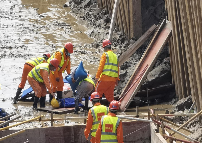 6月29日,山東裕龍石化項目部開展坍塌事故應急演練。演練模擬工人在進行地管施工中突然遇到塌方,施工人員被困,翻倒機械油品泄漏,項目部啟動應急響應預案,對人員、設備等進行救援處置。通過演練,參演人員掌握了坍塌應急處置程序,增強了員工的自救能力。