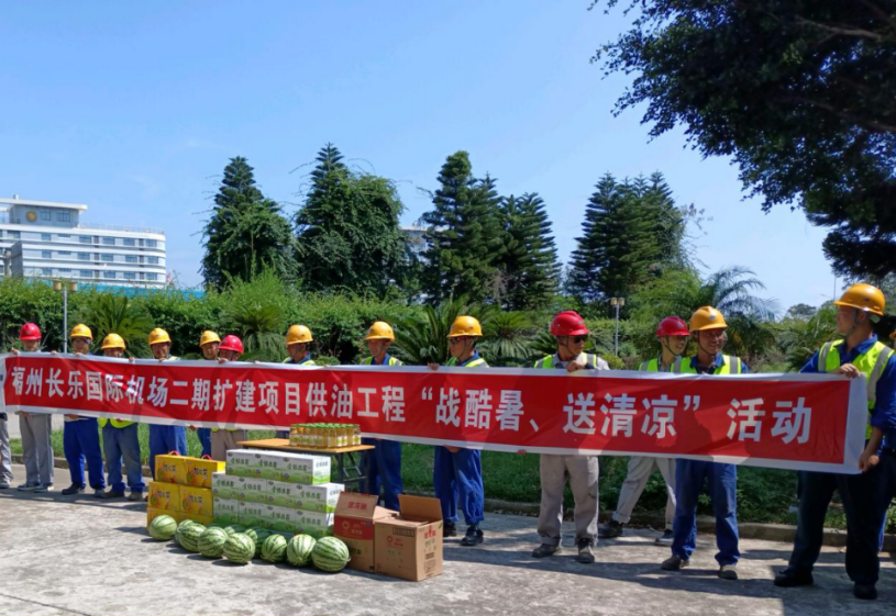 7月23日,公司項(xiàng)目中心福州長(zhǎng)樂(lè)國(guó)際機(jī)場(chǎng)供油工程項(xiàng)目部開展“戰(zhàn)酷暑、送清涼”慰問(wèn)活動(dòng)。