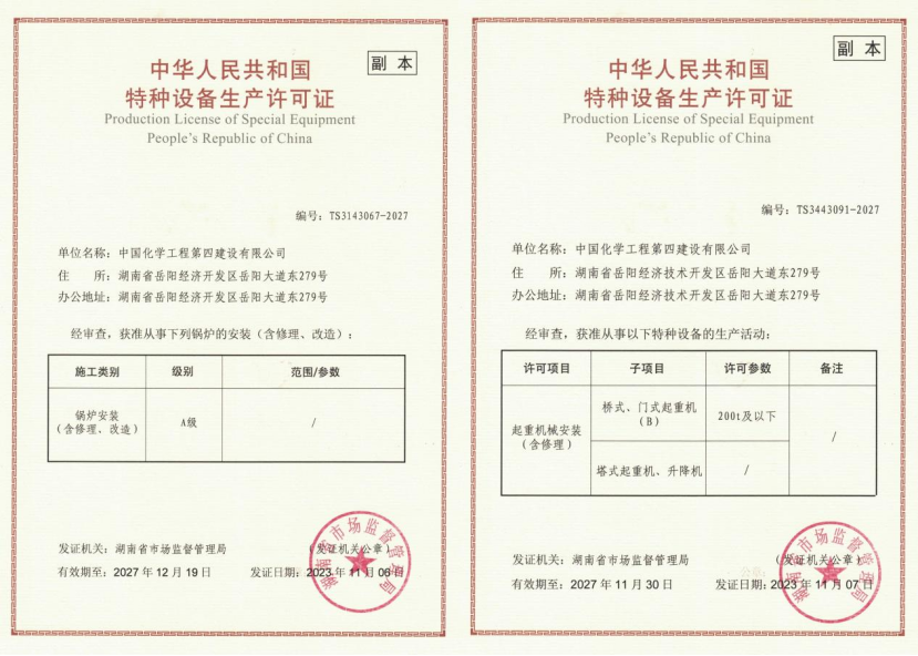 此次公司鍋爐安裝和起重機械安裝兩項特種設備生產許可證延續換證的完成,為公司積極參與市場競爭、推進公司高質量發展提供了有力支撐。