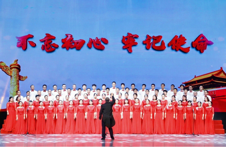 公司機關員工表演的大合唱《不忘初心》在眾首翹盼中閃亮登臺。公司員工引吭高歌,謳歌了公司70周年無論走過千山萬水、穿越雨雪風霜始終初心如磐、使命如炬。前半段曲調委婉動聽,引人入勝,后半段轉向激昂,音符仿佛山洪噴涌一瀉千里,現場的氣氛瞬間被點燃,鏗鏘有力的合唱聲從臺上傳來,帶動場下的觀眾沉浸其中,紛紛拿出手機記錄下這一刻。