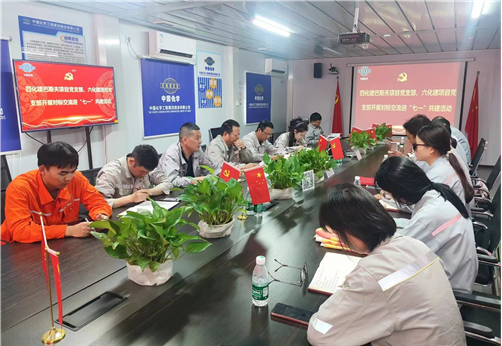 6月26日,公司湛江一體化項目黨支部聯合六化建湛江項目黨支部開展“對標交流迎‘七一’”聯學共建活動。活動中,雙方分別介紹了各自黨支部情況、黨建特色活動以及黨建示范點創建工作開展情況,交流了開展黨紀學習教育的經驗做法,圍繞“抓黨建促業務,以業務強黨建”主題進行交流探討。隨后,兩家黨支部共同開展主題黨日活動,觀看紅色影片、重溫入黨誓詞,激勵全體黨員堅定理想信念,爭做時代先鋒,以實際行動在項目一線踐行誓言譜寫新篇。