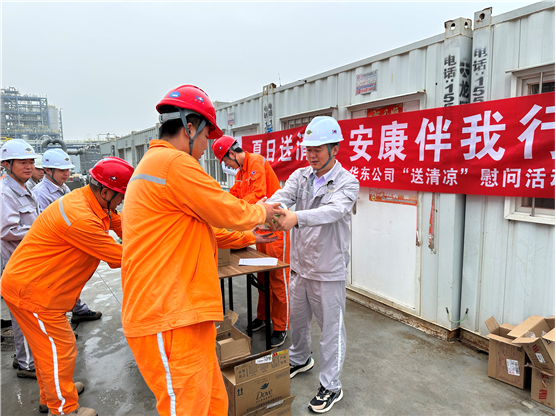 7月19日-25日,華東公司主要負責人先后赴山東裕龍、上海華誼、上海璞烯晶和嘉化二期等項目走訪慰問,為一線施工人員送去防暑降溫物品,并開展了防暑降溫常識普及和職工安全健康相關法規(guī)政策宣貫活動;同時,叮囑大家樹牢安全意識,注意防暑降溫,以健康的身體和飽滿的狀態(tài)投入到工作中去,為公司高質量發(fā)展作出新的更大貢獻。