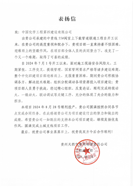 近日,西部公司收到貴州天然氣管網有限責任公司發來的表揚信,對項目部按照合同各節點目標圓滿完成任務給予高度贊揚。