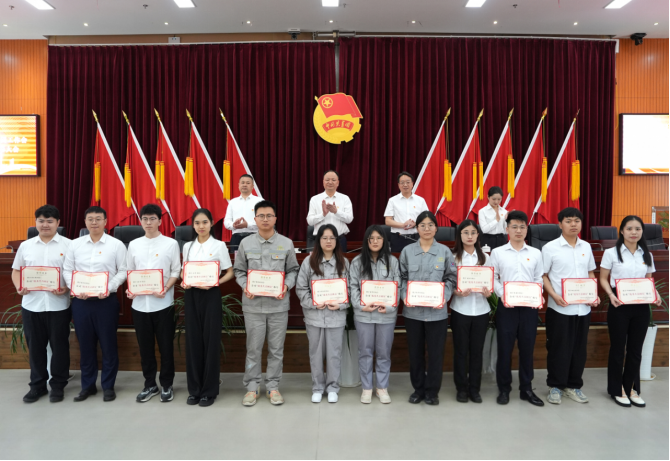 唐文方宣讀《關于表彰公司共青團2024年度“五四”先進集體和個人的決定》。在熱烈的掌聲中,公司領導為獲獎代表頒發榮譽證書和獎牌,激勵青年立足崗位再創佳績。
