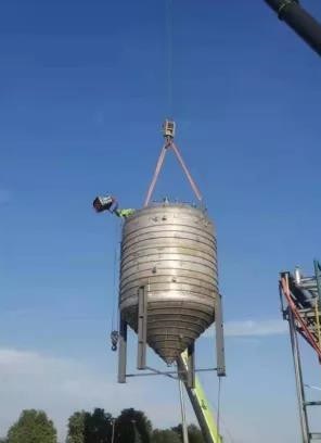 據(jù)悉,該分離水儲罐高7.5米、直徑4.4米,共有2臺,是項目首項設(shè)備吊裝。由于現(xiàn)場安裝環(huán)境復(fù)雜、就位難度大,使得儲罐吊裝難度高。為確保此次吊裝工作順利完成,項目部多次組織召開協(xié)調(diào)會,從吊裝方案設(shè)計、吊車選型、到貨設(shè)備的實際數(shù)據(jù)測量,都做了周密計劃與準(zhǔn)備。11月13日上午,經(jīng)過3個小時的緊張施工,分離水儲罐設(shè)備吊裝就位工作順利完成。