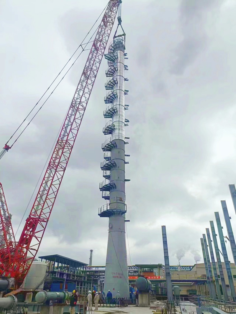 該脫輕塔上塔直徑3米、高65米、重量158噸,是1-丁烯裝置的核心設備,也是工程中最高最重的立式設備。為確保此次吊裝順利完成,項目部克服工期緊張、工序復雜等諸多不利因素影響,精心編制了吊裝專項施工方案,對吊裝人員進行安全、技術、質量等方面的交底工作,確保項目“開年第一吊”的順利完成。(通訊員 孫善義)