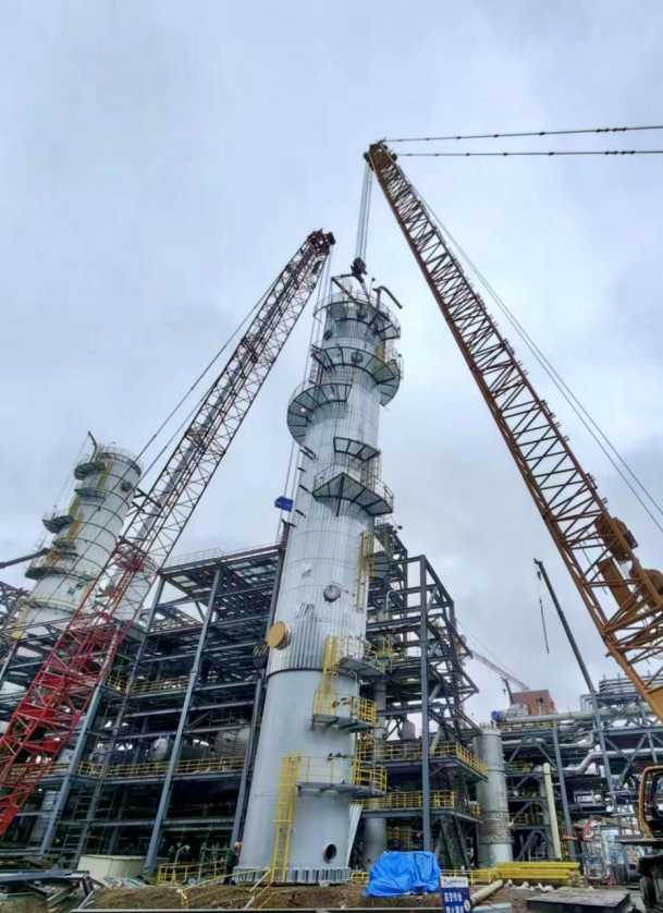 公司河北建滔項目成功吊裝大型塔類設(shè)備